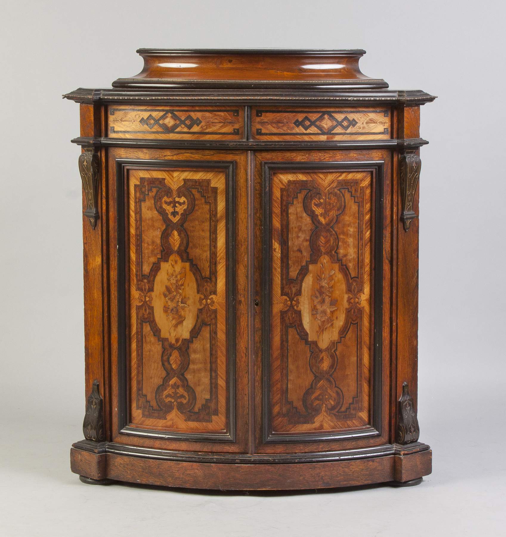 | Lot #: 673 Victorian Inlaid Ebonized & Rosewood Corner Cabinet |