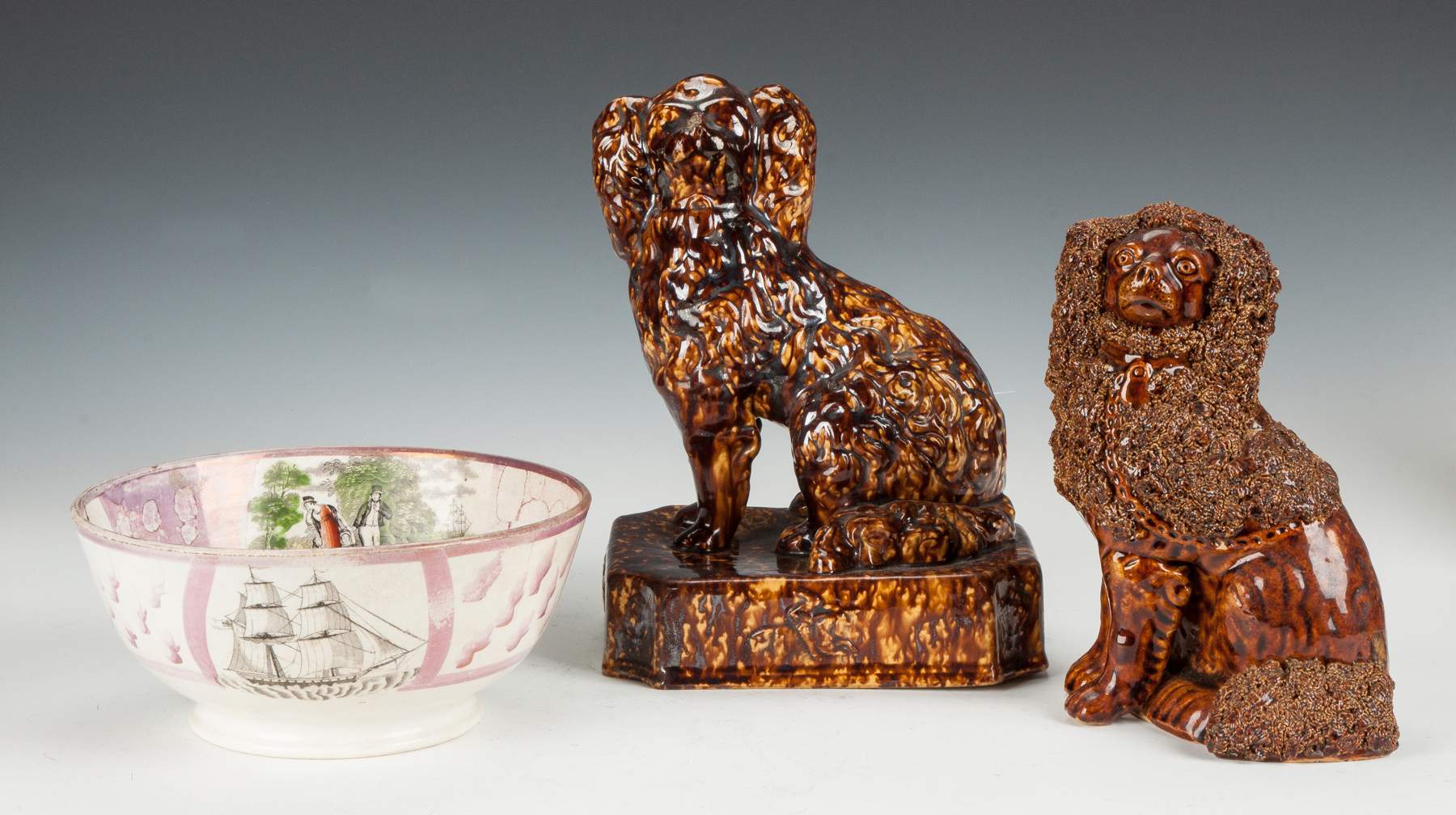 | Lot #: 686 Two Rockingham Dogs |
