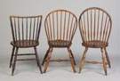 | All early 19th cent. Painted bamboo side chair. Two Hoop back chairs, refinished, one has repaired seat. |