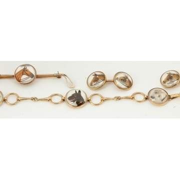 | With painted horses & Scotty dogs. Cuff links sgn. Diana. |