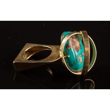 | 18k gold w/glass cameo. 14k & jade. 18k & turquoise, Sgn. Illeg. Snake. |