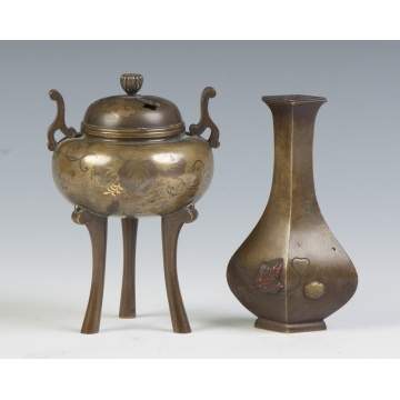 | Lot #: 253 Japanese Mixed Metal Censer & Vase |