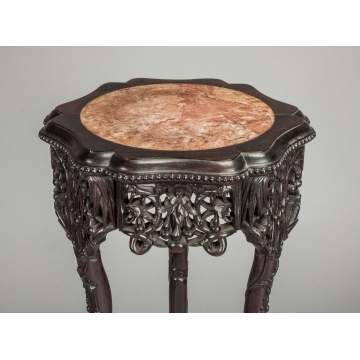 | Lot #: 282 Chinese Carved Hardwood Stand with Marble Top |