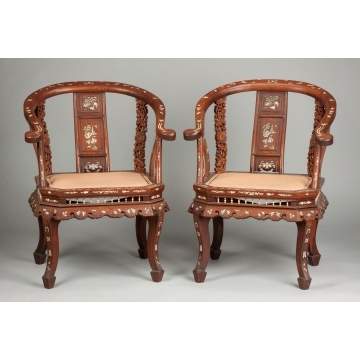 Chinese Carved Hardwood Chairs (Ox yolk back)