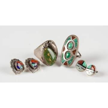 | Lot #: 42 Vintage Navajo, Turquoise & Coral Rings & Earrings |