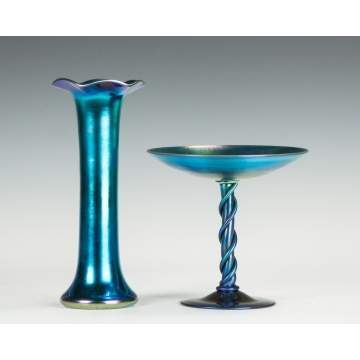 | Lot #: 435 Steuben Blue Aurene Compote w/Twisted Stem |