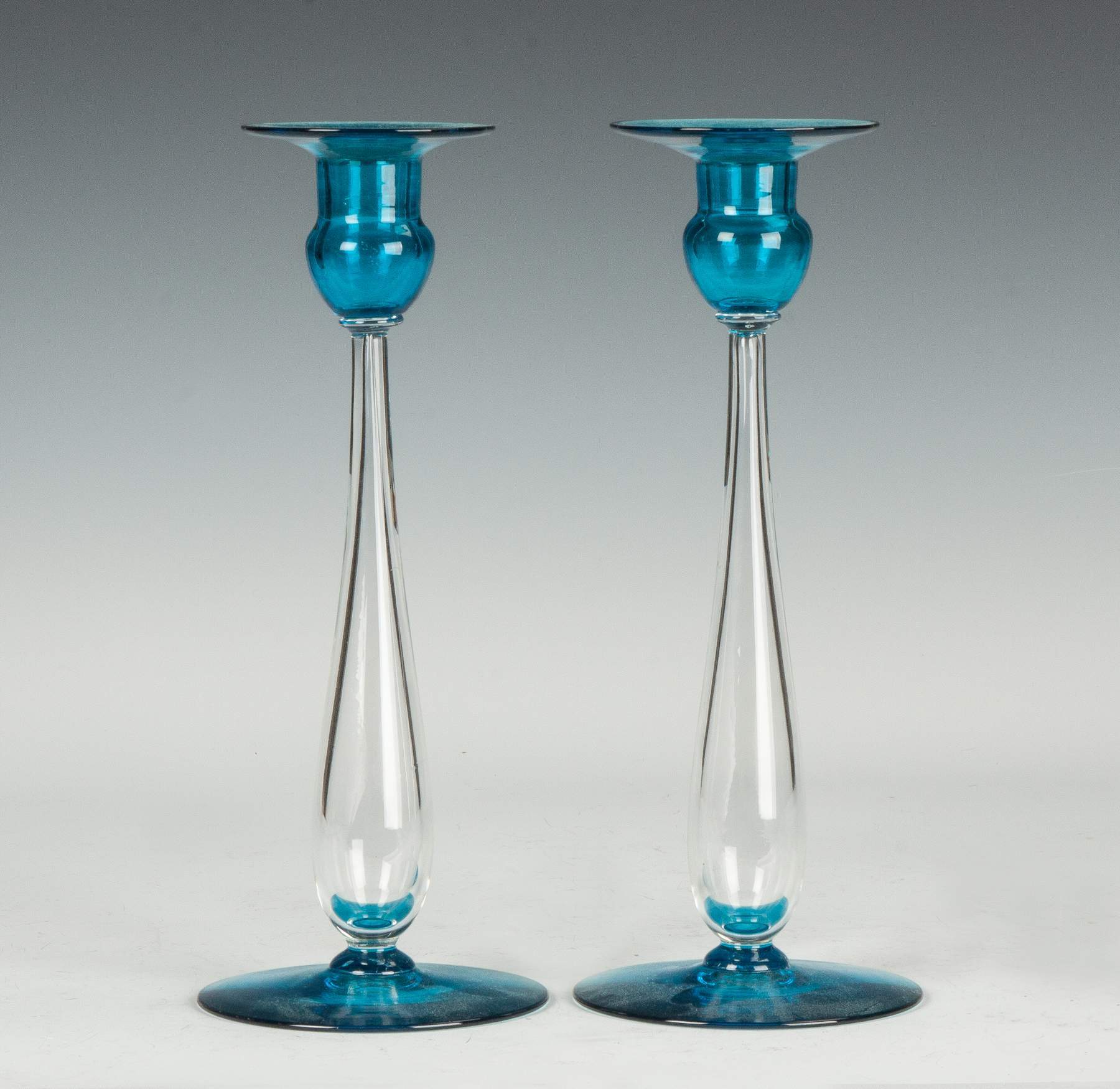| Lot #: 439 Steuben Celeste Blue Candlesticks |