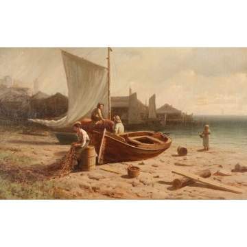 | Lot #: 461 George Lafayette Clough (American, 1824-1901) Dry Dock Boats, Seaside Village |