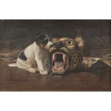| Lot #: 468 Alexander Pope (American, 1849-1924) Dog with leopard rug |