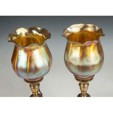 | Lot #: 476 A Pair of Candle Lamps with Tiffany Shades |