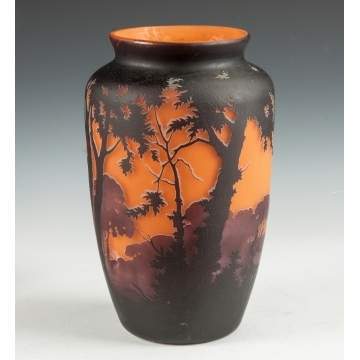 | Lot #: 497 Muller Fres Cameo Vase with Bathers in Landscape |