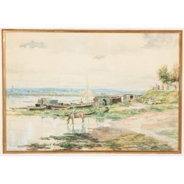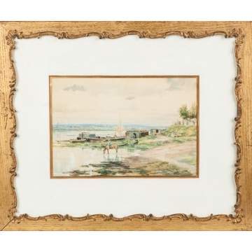 | Lot #: 534 Louis Aston Knight (American, 1873-1948) Stream scene with boats |