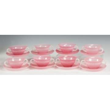 | Lot #: 543 Steuben Engraved Rosaline & Alabaster Sherbet Cups & Saucers |