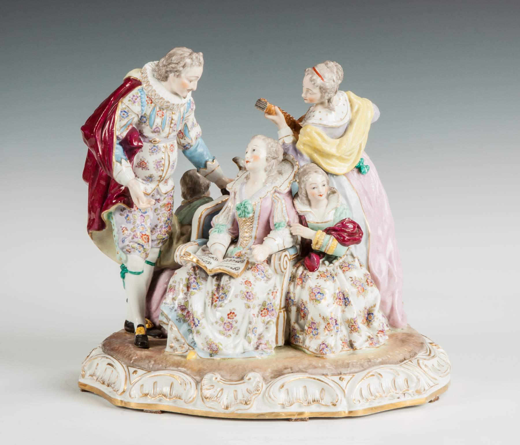 | Lot #: 549 German Hand Painted Porcelain Figural Group of Musicians |