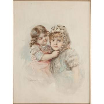 | Lot #: 571 Johann Gerof Meyer von Bremen (German, 1813-1886) Watercolor of two children |
