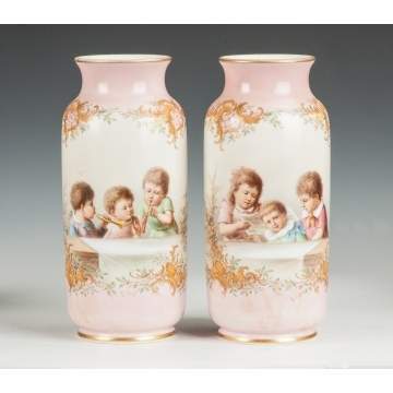 | Lot #: 579 Pair of Hand Painted & Enameled Glass Vases |
