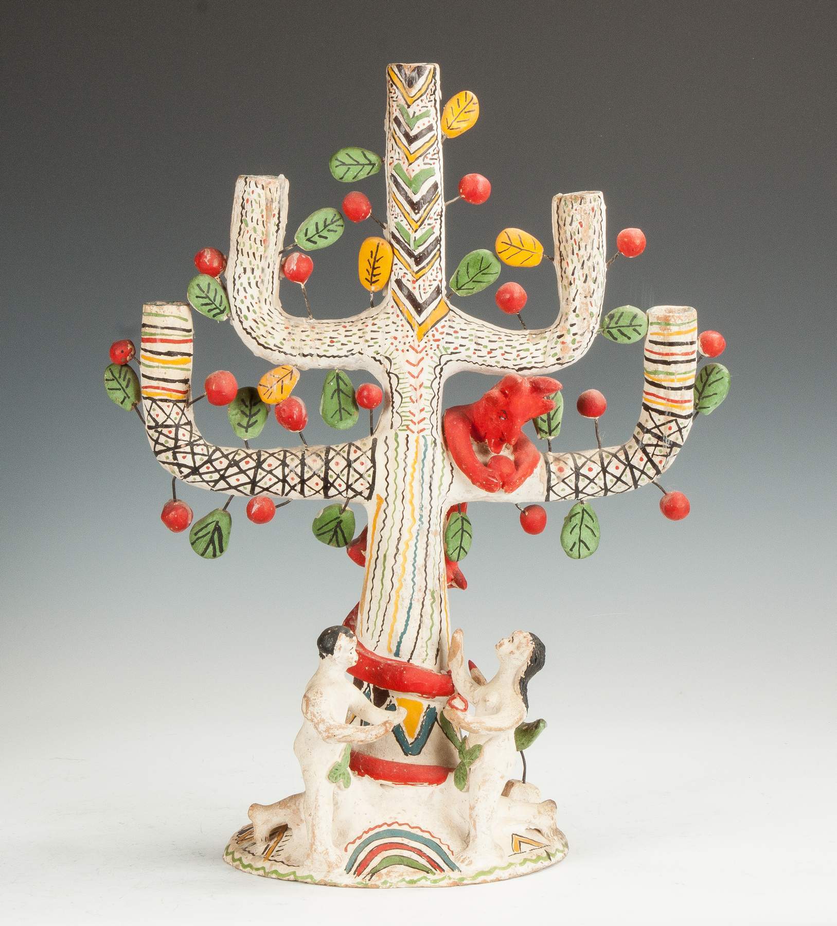| Lot #: 669 Mexican Pottery Candelabra, Adam & Eve with Tree of Life |