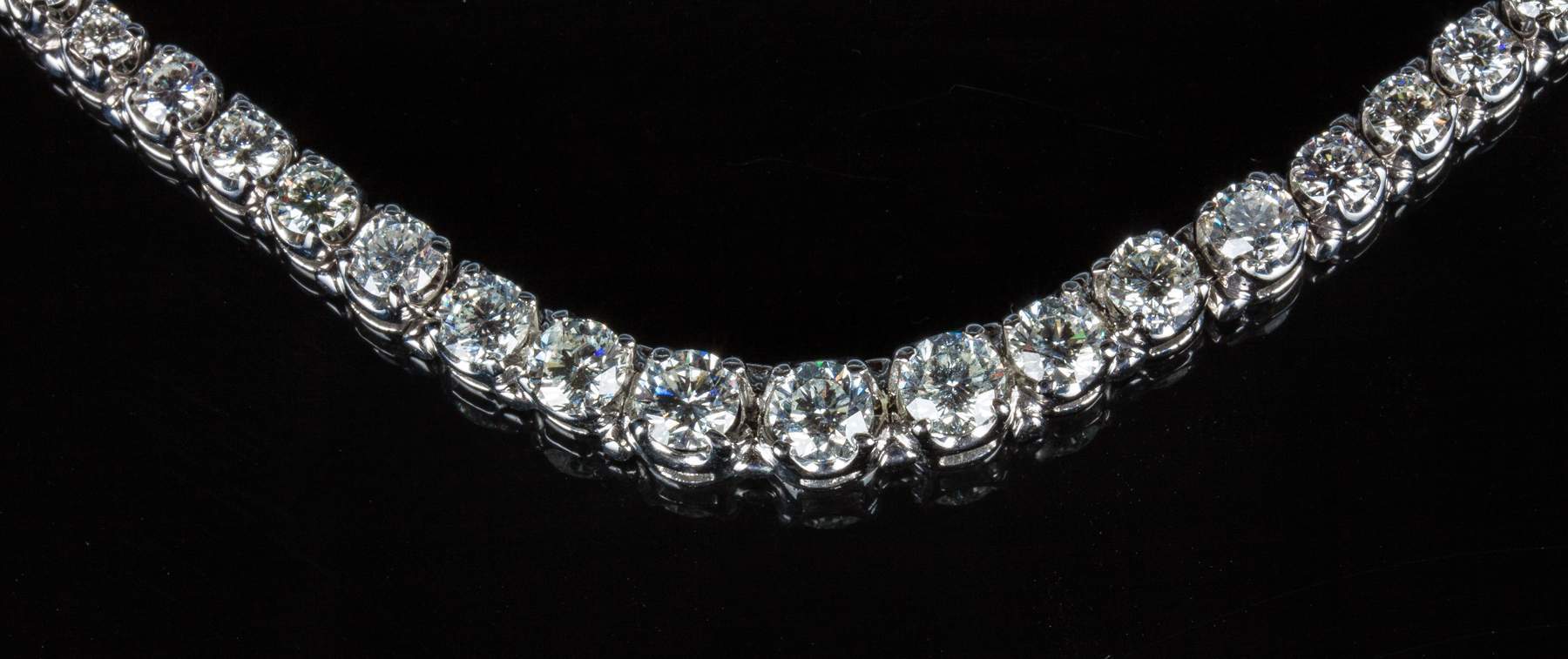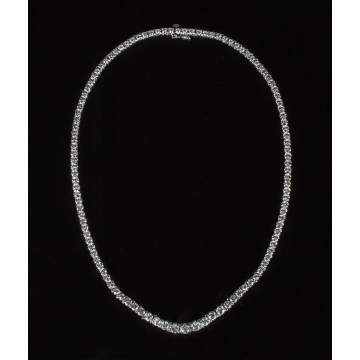 | 113 graduated diamonds; round brilliant. Largest measures approx. 4.6mm. Smallest approx. 2.4mm. Total Approx. weight 10.25 ct. Clarity SI2-I1. Color G-J. |
