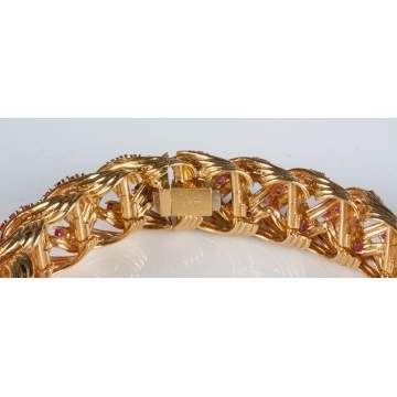 | Lot #: 15 Tiffany 18K Gold & Ruby Braided Bracelet |