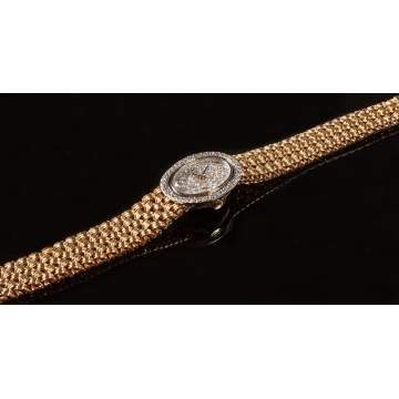 | Pave diamond dial & bezel. Mesh style band. Diamonds are VS clarity, G-H color, approx. 2.4 ctw. 25.6 dwt. |