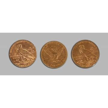 | Lot #: 38 Two Gold Indian Head & One Liberty Head Five Dollar Coins |