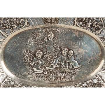 | 19th cent. With cherubs & garland. 800 silver, 19 ozt. |