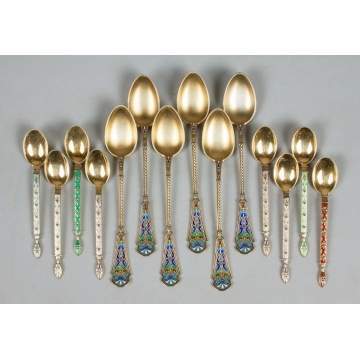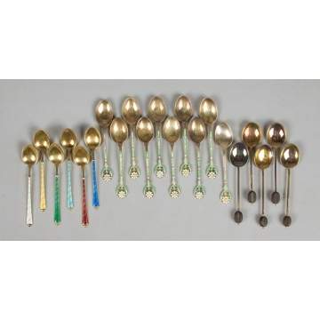 Six Sets of Sterling Silver & Enameled Demitasse Spoons