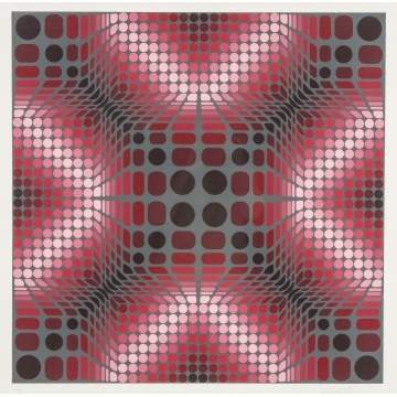 | Sgn. in pencil lower right, Vasarely & numbered lower left, 12/300. Color serigraph. 1984. |