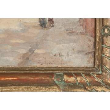 | Sgn. lower right, John Russell, Montreal, '23. Oil on cradleboard. |
