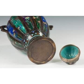 Cloisonne & Bronze Covered Vase with Handles