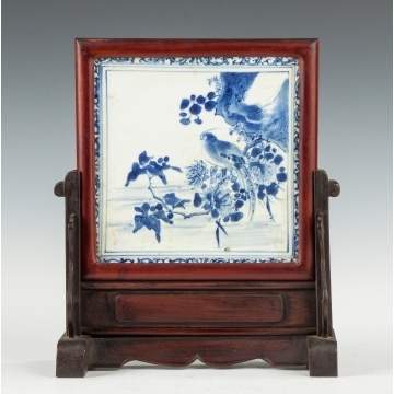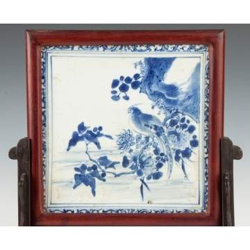 | Lot #: 324 Chinese Porcelain & Teakwood Table Screen |