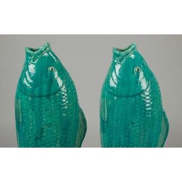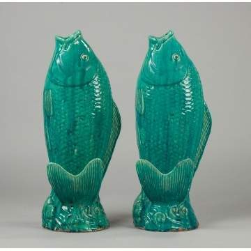 | Lot #: 345 Two Blue Glazed Terracotta Fish |