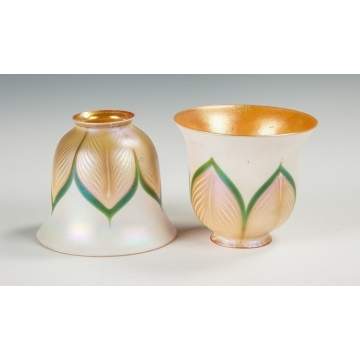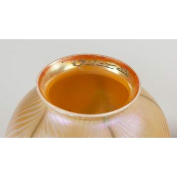 | Early 20th cent. Sgn. Quezal. Gold feather decoration. |