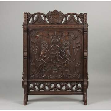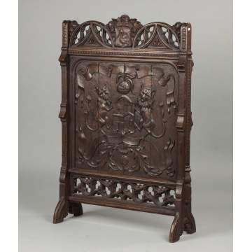 | Lot #: 436 A Pair of Carved Oak Gothic Fire Screens |