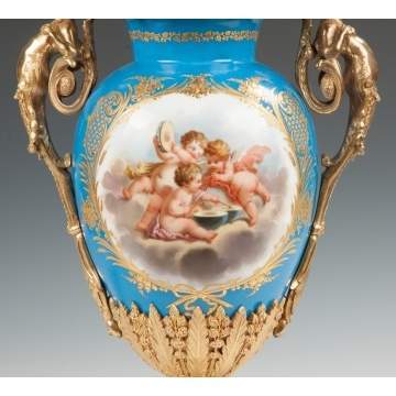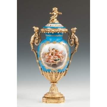 | Lot #: 444 Sevres Hand Painted Porcelain & Gilt Bronze Covered Urn |