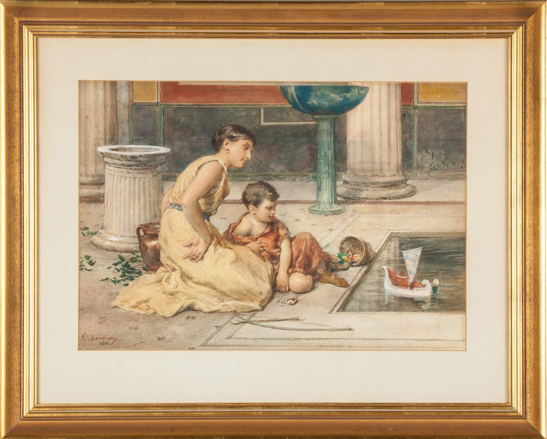 | Lot #: 458 Roberto Bompiani (Italian, 1821-1908) Mother & Child at the Reflecting Pool |