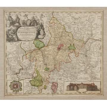 | Lot #: 536A Unknown (German, 17th century), Map of the Wurtzburg Diocese of The Holy Roman Empire, c. 1669 |