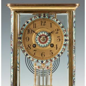 French Brass & Champlevé Cloisonne Crystal Regulator