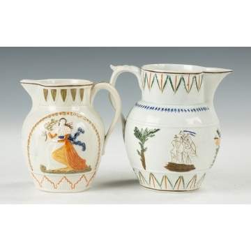 | Lot #: 636 Two Staffordshire Pearlware Pratware Pitchers |