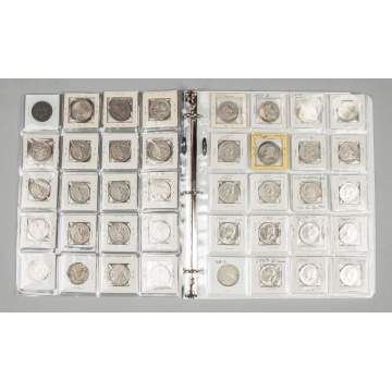 | Incl. Liberty head dollars, standing Liberty 1/2 dollars, half dollars, quarters, dimes, pennies, paper currency, souvenir CA gold tokens, etc. |