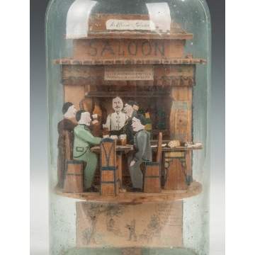| Lot #: 61 Carl Worner NY State Carved & Painted Folk Art Saloon in a Bottle |