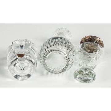 | One sgn. Orrefors. One Baccarat. One marked "Exclusive Design for Tiffany & Co., 2002", with silver top. |