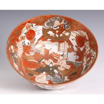 | Kutani Painted Porcelain Bowl w/Figures, Rooster, etc. , Excellent. Ht. 5 1/4" Dia. 13 1/2" Est. $800-$1,200 |