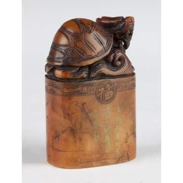 | Lot #: 45 Chinese Carved Soapstone Seal with Turtle |