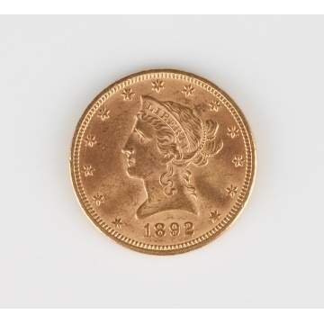 | Lot #: 59 Liberty Ten Dollar Gold Coin, 1892 |