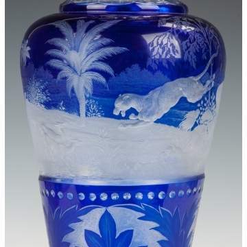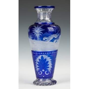 | Lot #: 155 Cobalt Blue Cut to Clear Vase |