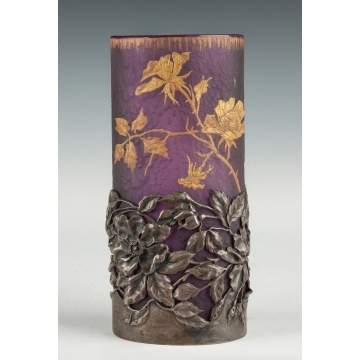 | C. 1900. With enameled flowers and silvered bronze mounts. |