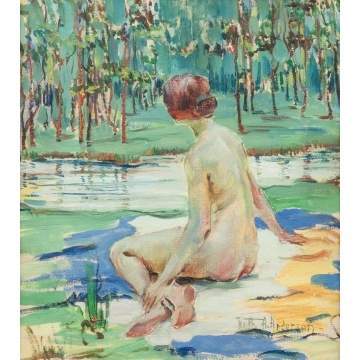 | Lot #: 215 Ruth A. (Temple) Anderson (American, 1891-1957) Seated Nude in Landscape |