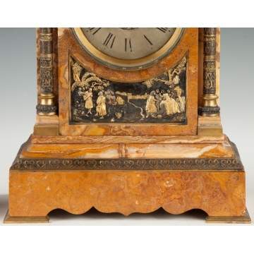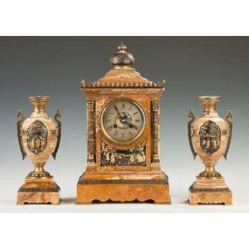 | Lot #: 268 Achille Brocot, French, Mixed Metal & Marble 3-Piece Clock Set with Asian Motifs |