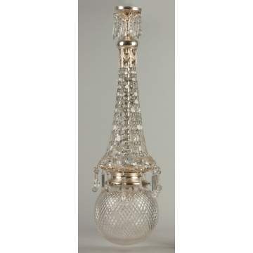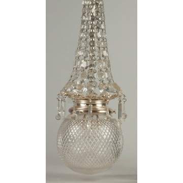 Cut Glass & Prism Silver Plate Hanging Lamp